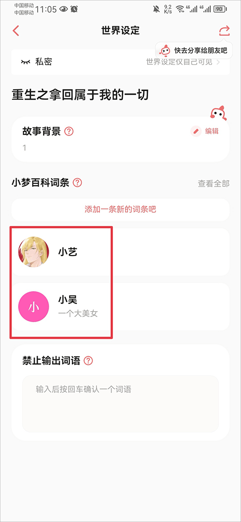 2. 优化了创作页面的世界设定入口,编辑更方便。