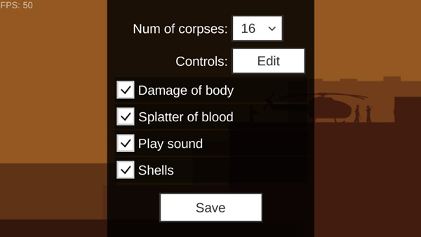 Damage of body:你可以把其翻译成身体损害,其实点开这个选项在游戏中你开枪会对会把僵尸的某个部位打烂....可以这么理解...增强游戏性