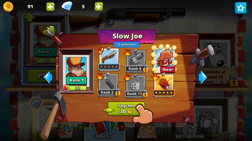 2、酷炫的操作玩法,升级自己的作战实力,指挥更多糟老头子对决,击败敌人。