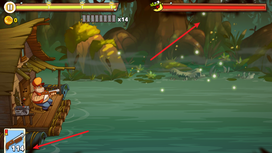 3、当鳄鱼出现是通过点击屏幕进行射击击败可恶的鳄鱼。