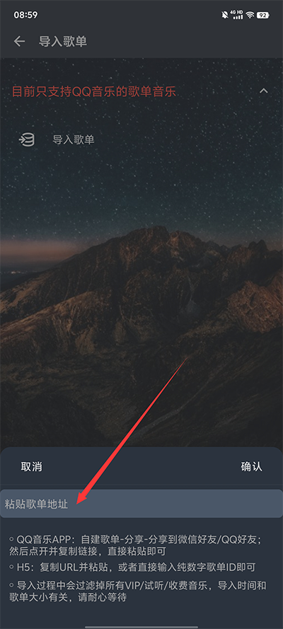 ps:目前速悦音乐仅支持导入QQ音乐的歌单歌曲