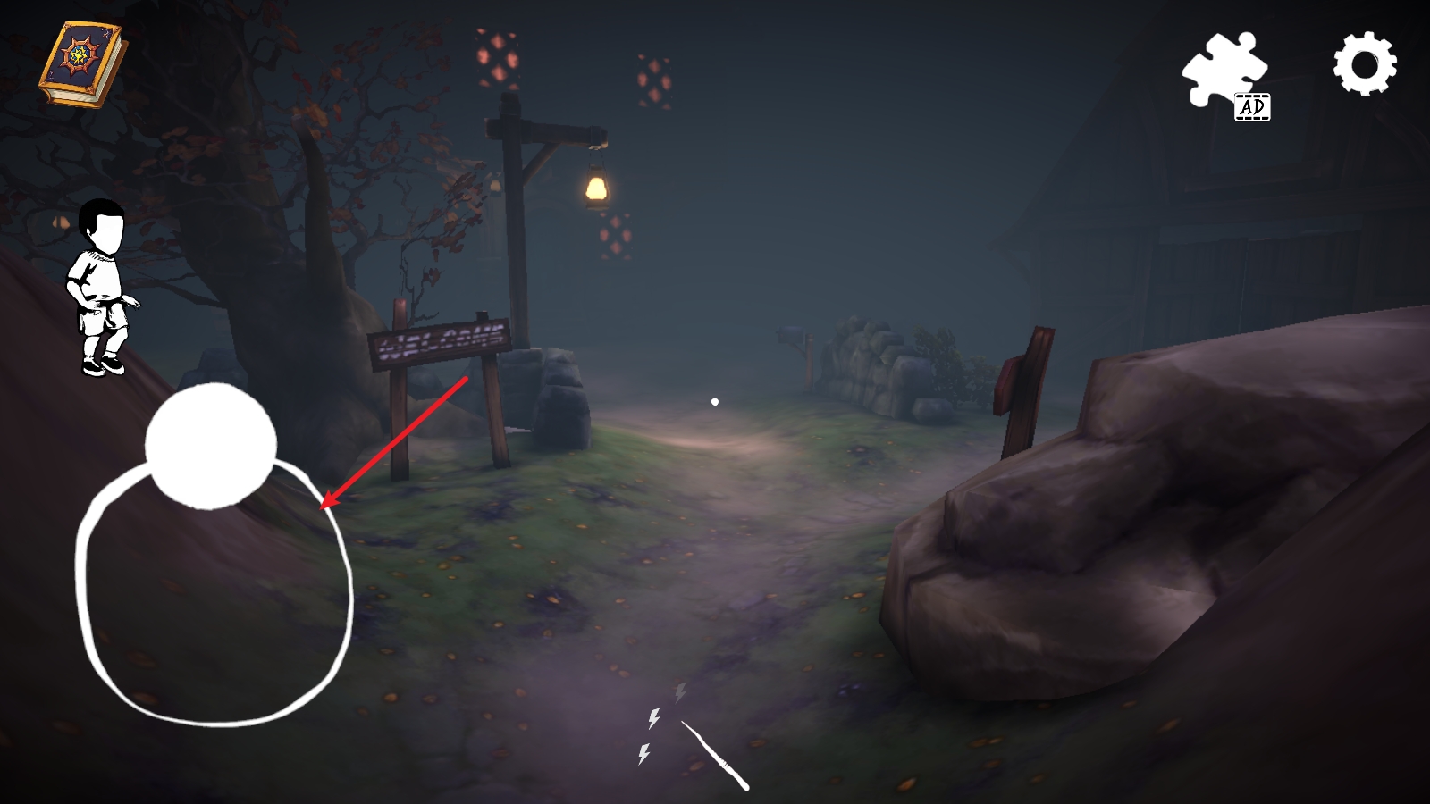5、我们还可以点击下方的魔法棒,随后跟随手势移动,这样就能释放电击魔法了。