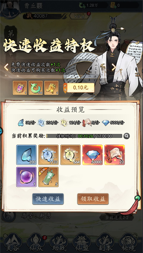 累积挂机可以获得大量的积累奖励,其中就包含了灵气。