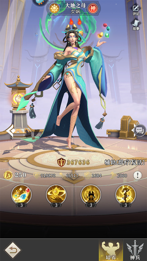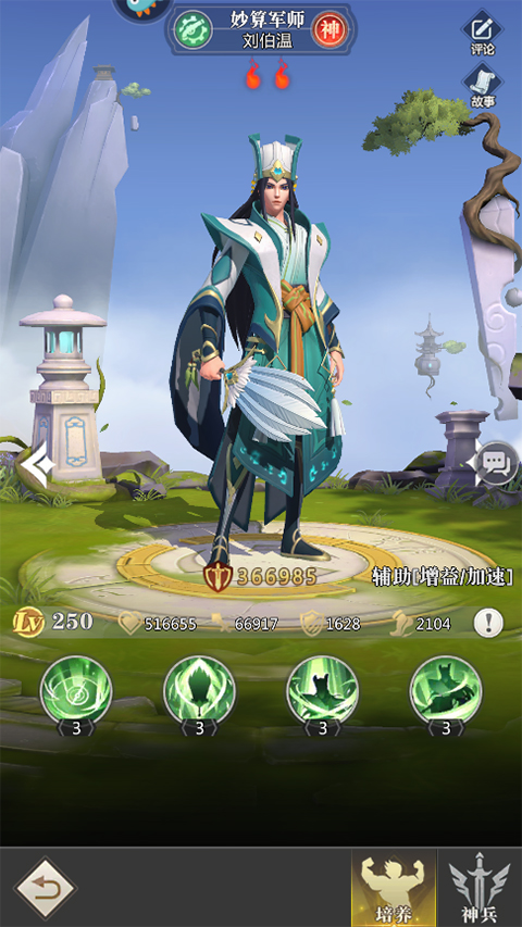 游戏收录的英雄覆盖了上下五千年,三国武将、水浒好汉、封神神仙、帝王将相、巾帼红颜、神话传说全都有。目前差不多六七十位英雄,每个都有自己的独立技能体系,像武则天主打群体冰冻,伏羲能给全队加攻击,诸葛亮负责控制和增益,搭配空间挺大。