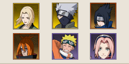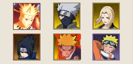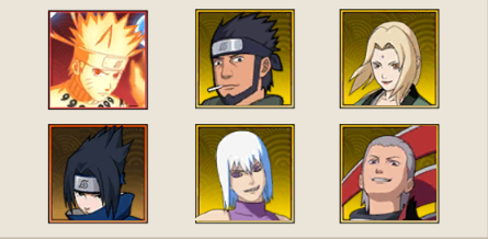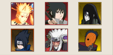 1、鸣人·九尾查克拉+佐助·须佐能乎+大蛇丸·青年+佐助·少年+自来也·仙人模式+阿飞