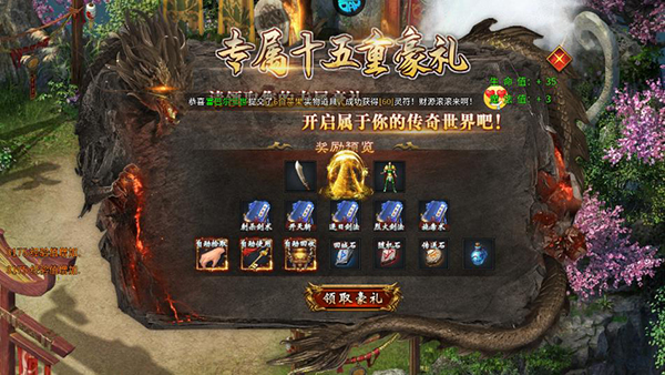 1、上线跟随任务引导领取十五重噬龙沉默豪礼,开启自动使用、自动回收