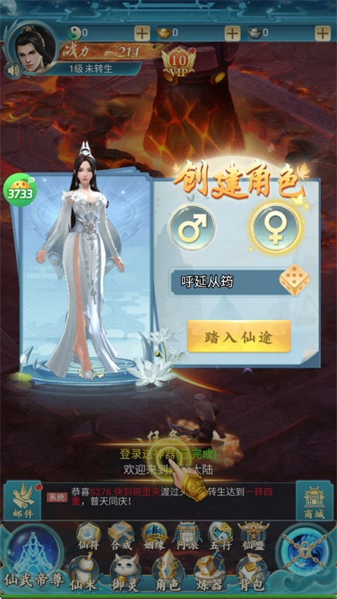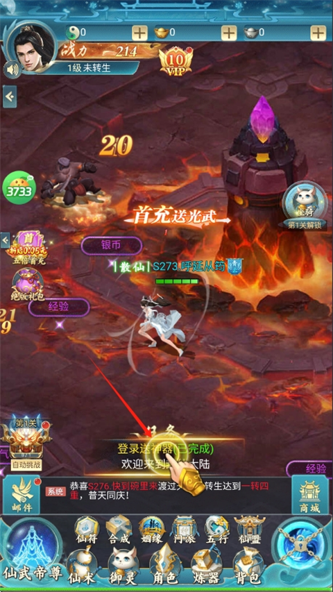 3、首次进入游戏后可领取免费神器,超多极品道具助你称霸三界;