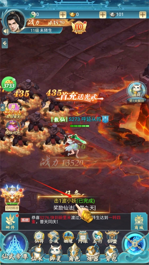 5、完成主线任务后可获得大量奖励道具,战力提升以及稀有法宝等;