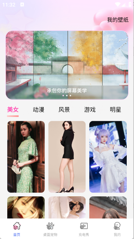 手机心动壁纸是一款免费的手机桌面美化 APP,其中包含动漫、风景等各是各类高清无水印壁纸,可收藏设置,能精准推荐、自动更换,还提供来电秀、桌面宠物,整体壁纸资源更新快且紧跟潮流。满足用户的日常需求。