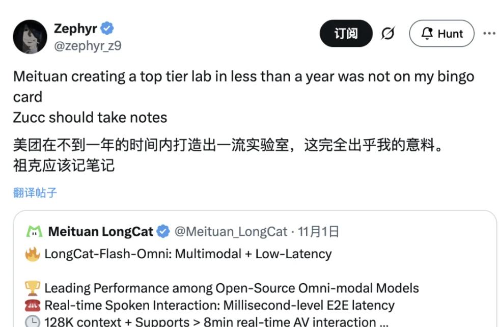 美团这款新发布模型也引发了外国网友的热议。其中有网友表示:“这家中国外卖公司可是大有来路,年营收高达数百亿美元,员工人数也超过 Meta,是那种可以把前沿模型开发当成副业来搞的巨头公司。”甚至点名扎克伯格:快来学着抄作业。