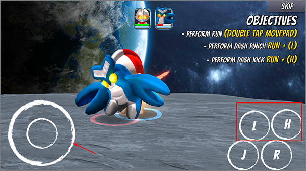 5、玩家根据提示,按住左侧的移动按钮和右侧的上两个攻击按钮即可对怪兽释放连招。