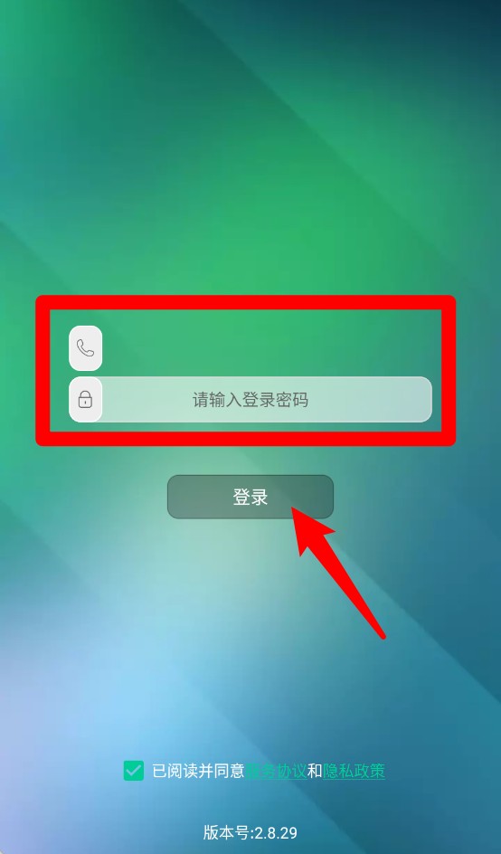 1、在登录界面输入注册手机号和密码后,点击“登录”按钮即可进入应用首页使用功能。