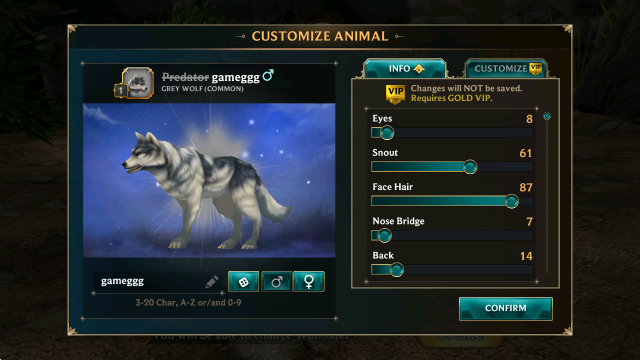 2、随后取好名字,然后修改一下狼的外观参数即可正式开始。