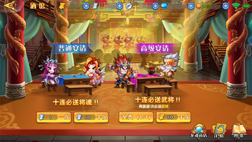 每次10连必定会获得16资质的武将及1000点龙魂币,龙魂币可以在龙魂商店兑换武将,就算没抽到也可以兑换到自己心仪的武将。