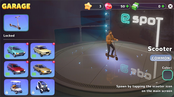 4、点击右上角的手机,然后点击汽车标志可以进入车库,你可以购买属于自己的车辆。