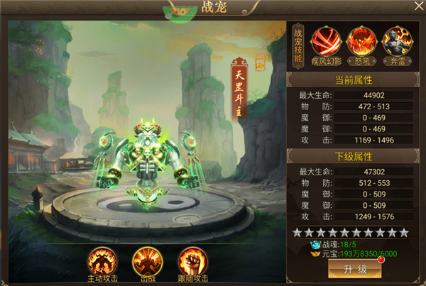 使用资源提升战宠等级是主要提升战力途径