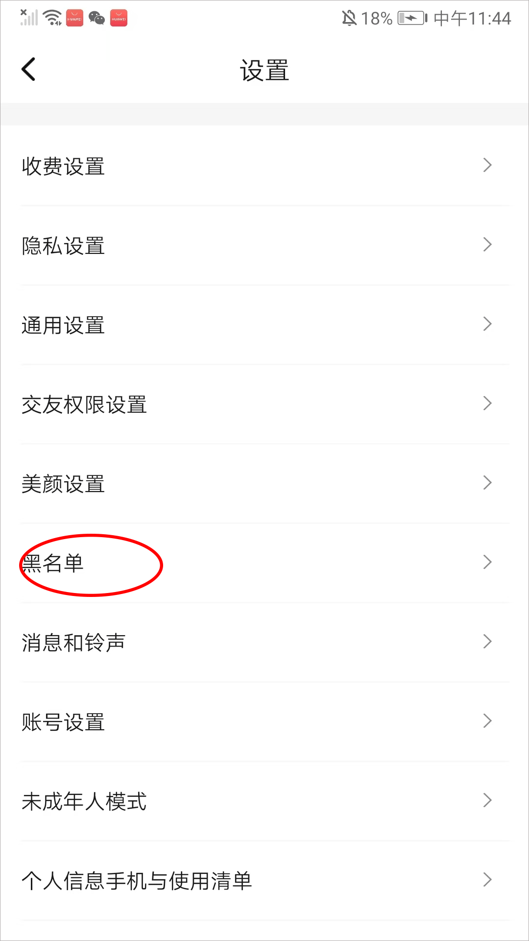 4、就能看见被你拉黑的用户,点击移出黑名单即可