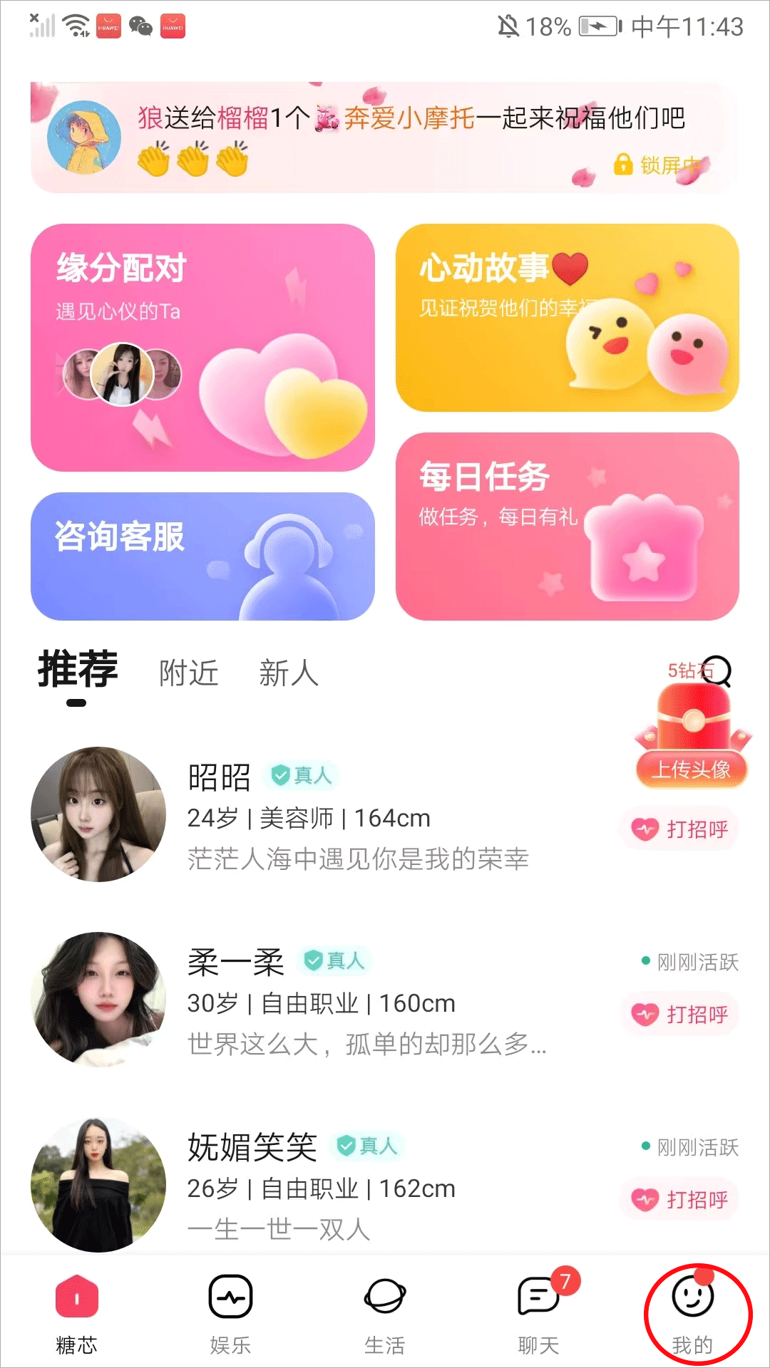 糖芯是一款集文字、语音、视频等多功能社交平台,提供了一个真实、安全和有趣的社交环境,给用户带来多样性的交友体验。