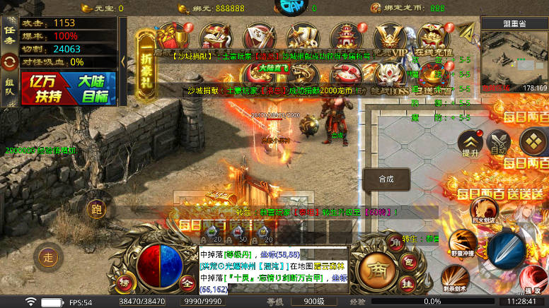 -趣味限时活动:开服后会密集开启各类福利活动,10分钟起就有土城跑酷、天降财宝活动,跑动或通过随机石传送就能获取道具和资源;每日还有武林争霸、激情点炮、摇钱树等活动,比如武林争霸活动中,击杀玩家和怪物可积累积分,排名第一能获得“天下第一”称号;摇钱树BOSS血量低于50%或被击杀时,会掉落大量无归属奖励,玩家可自由拾取。