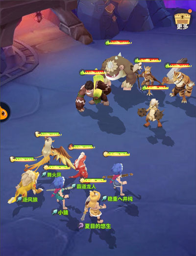 最好的防守就是进攻,自己队伍中宠物全是是输出,没有辅助、治疗类型的,比较怕的是水系阵容,刚好被克制导致输出能力不够,但在对付其他属性的敌人都有非常不错的效果,宠物造成的直接伤害足够,加上灼烧状态的持续伤害,到对方回合时也会因为行动而被压低血量。