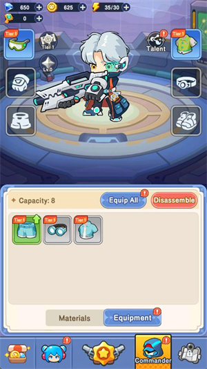 5、点击commander按钮可以给你的角色搭配不同的装备,这些装备可以提升你的伤害。
