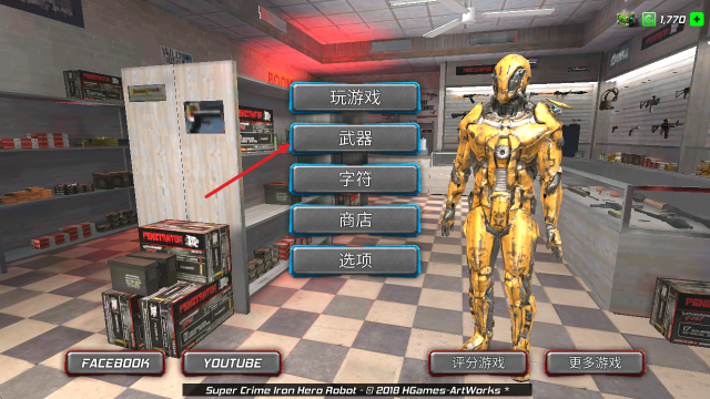 1、主界面中点击武器。