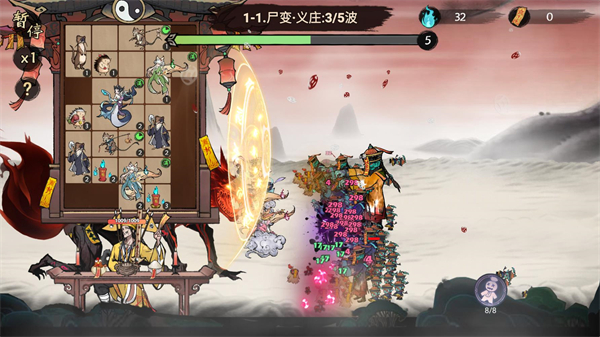 5、每一波结束都会进入商店来召唤新的仙家,不断合并来提升等级增强自己的实力。