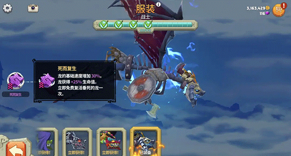 2、进入每一个关卡前,会出现1个随机增益效果(花费宝石)和2个固定增益效果(花费金币),驭龙者们可选择其中任意一个开始挑战。