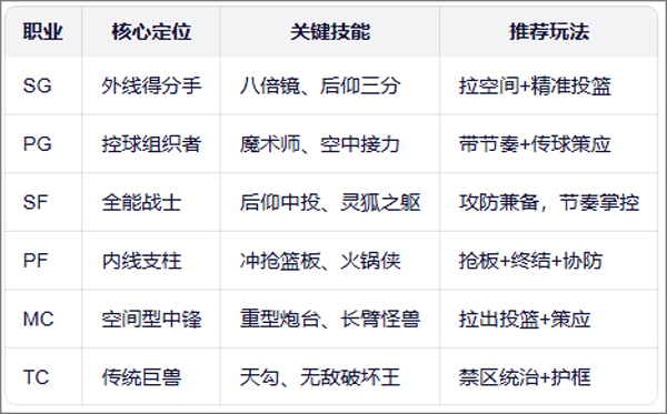 小攻略:PF是最均衡的防守职业,进攻辅助、篮板辅助、中距进攻能力出色,自由灌篮使其拥有稳定的得分能力。