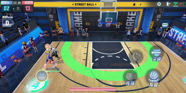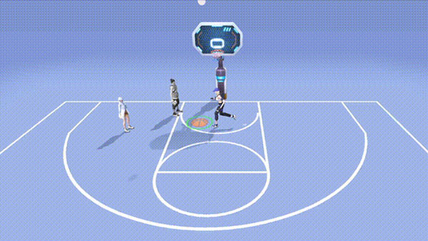 空中接力:当有队友请求空接时,将球向篮筐抛出,队友空中接球