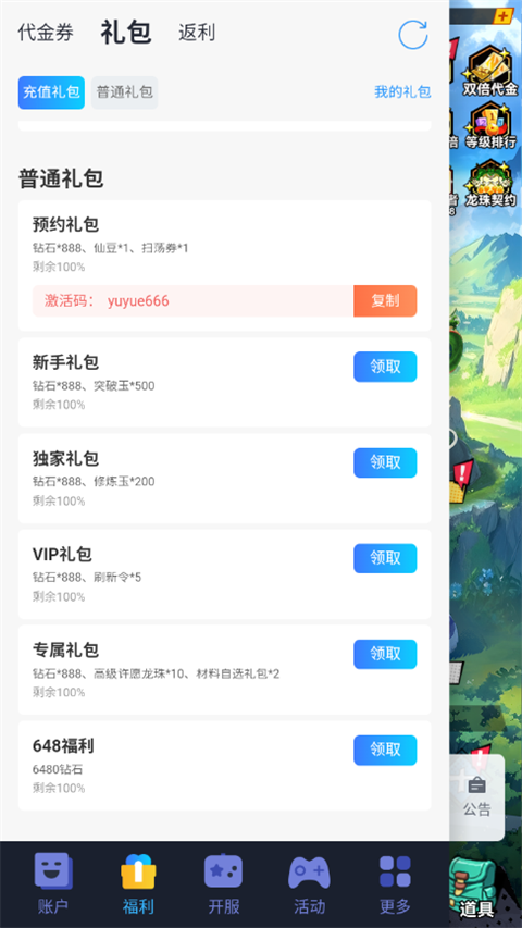 ★后缀福利说明:每日登录即可领取大量钻石和VIP经验,免费直达满V,每日完成日常任务抽代金券,无限续航!