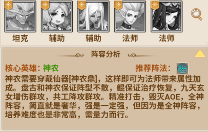 技能描述:为己方全体回复等同施法者105%攻击的生命值,并有60%概率提升友方全体(除自身)15%攻击,持续2回合