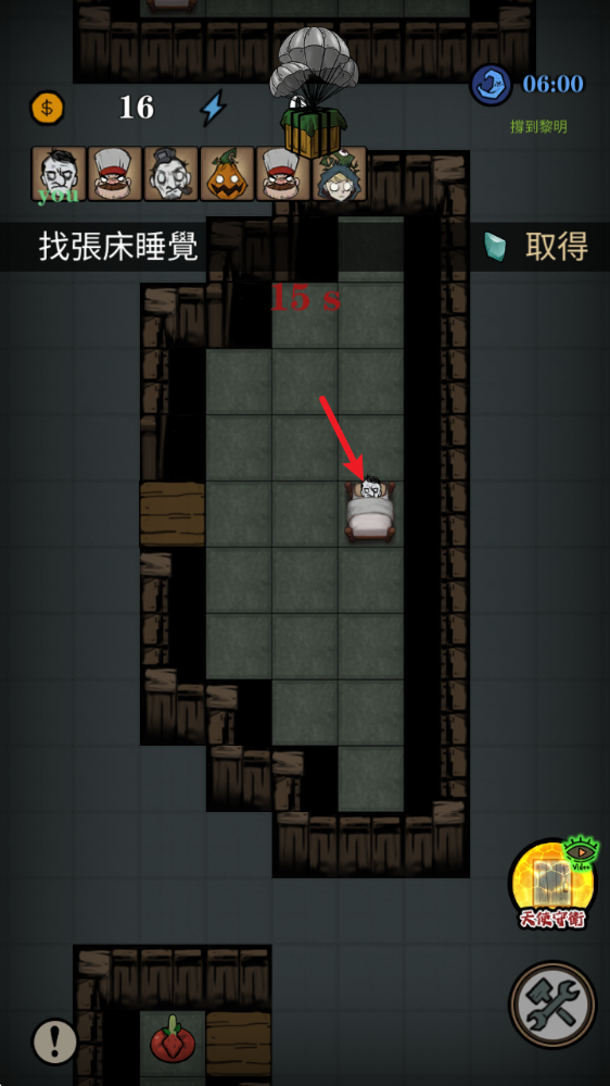 3、通过睡觉可以获得金币,然后建造自己的防御设施。