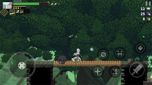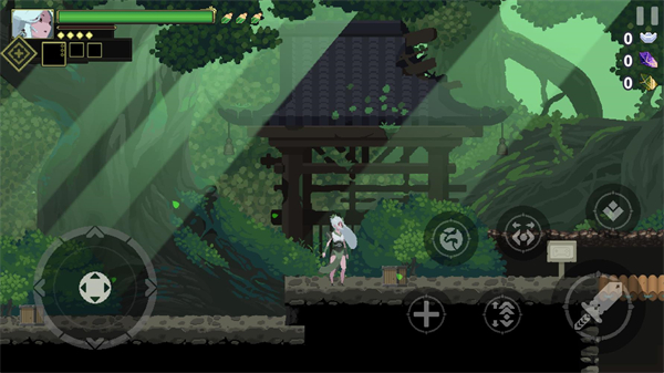 扎实的像素动作手感:角色动作硬直与连击反馈设计合理,配合攻击音效与血条变化,营造出富有节奏的打击体验。