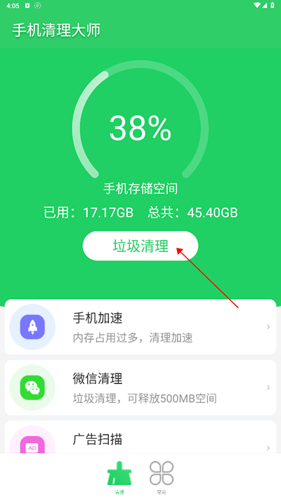 1、在本站下载后打开进入软件,点击垃圾清理;