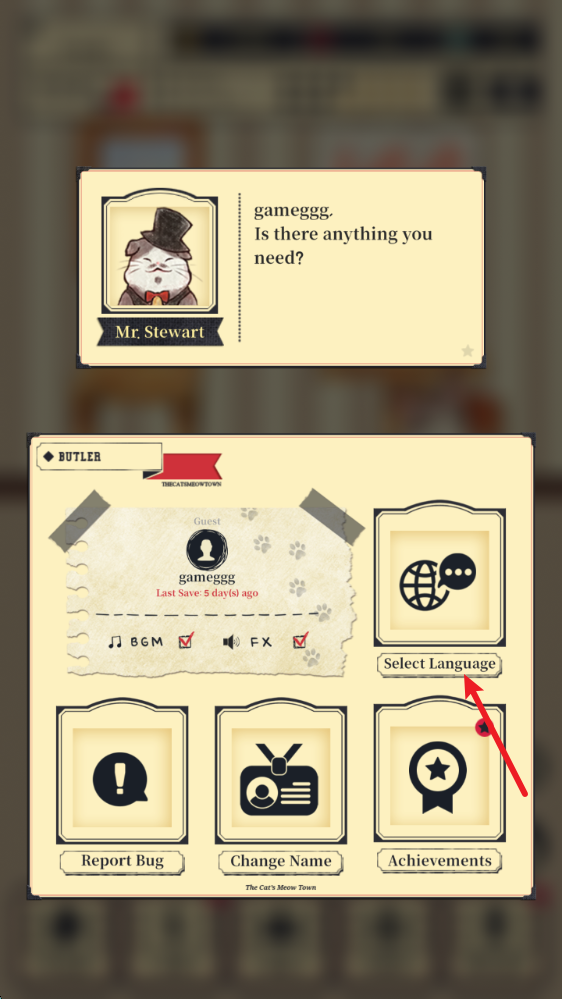 2、接着就能伴随猫咪一起进入场景,上方可以看到猫咪的饱足感。
