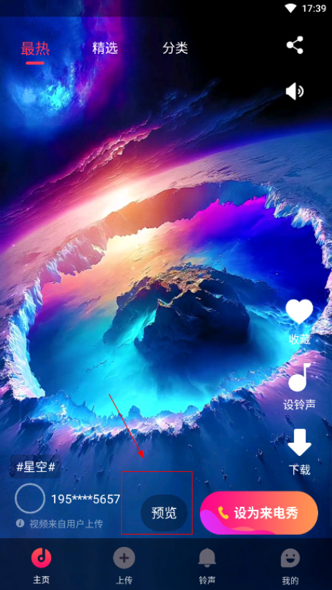 1、首先打开来电秀,找到一个要设置的来电视频,然后点击【预览】;