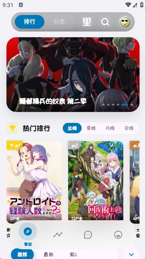 1、进入到首页排行页面将动漫按照热度进行了排序。