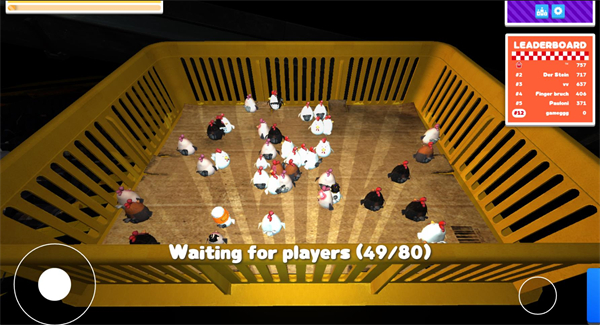 《鸡块大逃杀》是一款以80只鸡混战为主题的多人竞技生存游戏,玩家扮演一只小鸡,在充满机关陷阱的关卡中躲避各种危险,努力成为最后存活的那一只。游戏包含4个不同的关卡,玩家需要通过走位和策略应对,淘汰所有对手,最终夺得金色王冠。