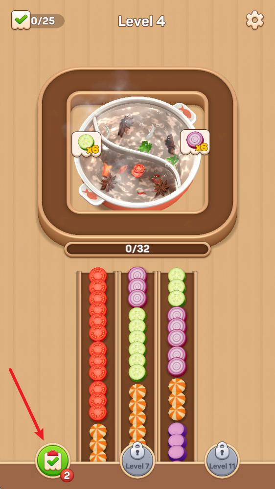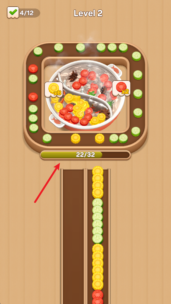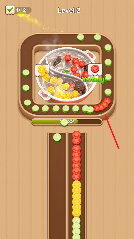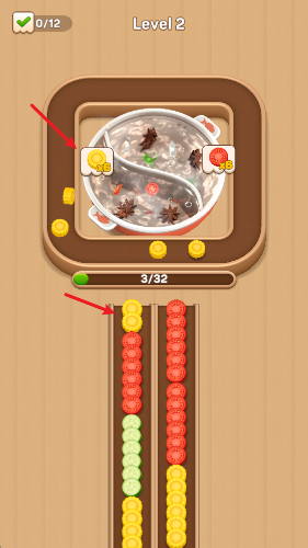 魔性洗脑的玩法循环:看着食材一个个“噗通”落入锅中,配合流畅的动画,让人忍不住一关接一关玩下去。
