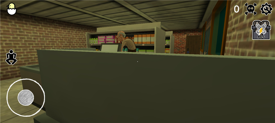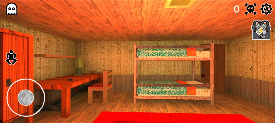 5、进入游戏后,我们在一个房间里面,玩家需要躲避开爷爷奶奶逃离这个房间,左手控制角色移动,右手滑动屏幕调整视角;