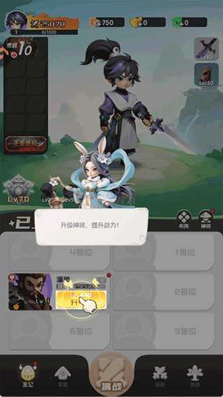 神将升阶需要消耗金币以及大量神之心,神将升阶后能够获得属性加成并装备神格。