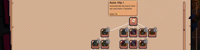 此时金币将源源不断地涌入,你可以用它们进行各种升级,例如提高每种扑克牌型的收益百分比、增加翻牌时间,甚至增加同时进行的牌局数量。升级到最高等级后,你将拥有10个独立的牌局,每个牌局包含7张牌,依次翻牌。