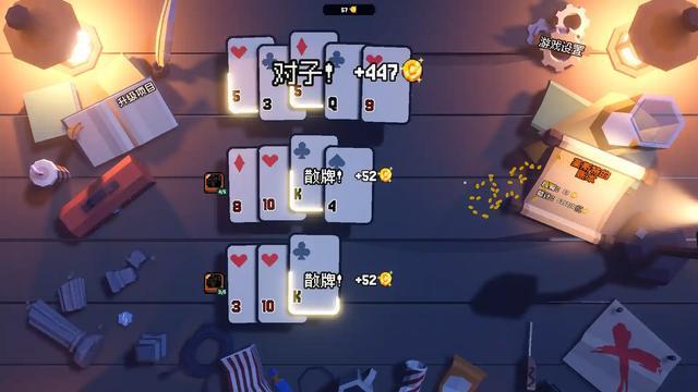 多桌并行操作:单桌翻牌效率太低?玩家可同时开启多张桌子,同步翻牌,收益瞬间翻倍(如2张桌子同时翻出“三条”,收益是单桌的2倍);