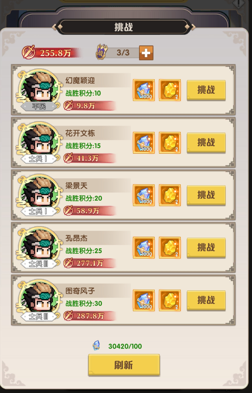 每日拥有免费挑战次数,超额可消耗挑战令追加,胜负直接关联演武积分与排名。巧用魏蜀吴群阵营克制关系,搭配前后排最优布阵,既能针对性破解对手防御阵容,也能打造坚不可摧的防守体系。