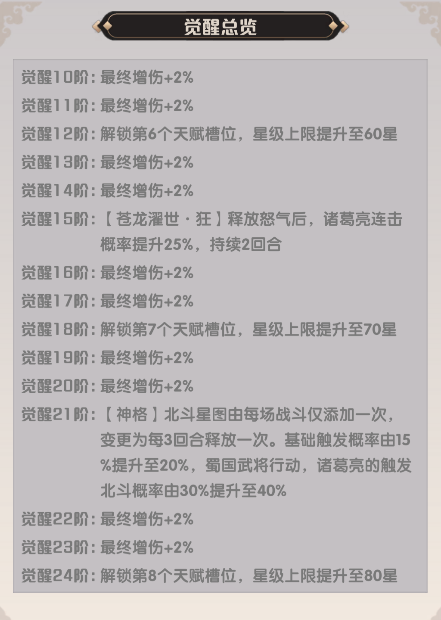 养成维度:可通过升级、突破解锁潜能,吞噬同名武将升星获天赋,传说及以上品质武将还能觉醒解锁24阶强力效果,天赋洗炼可自定义战力方向