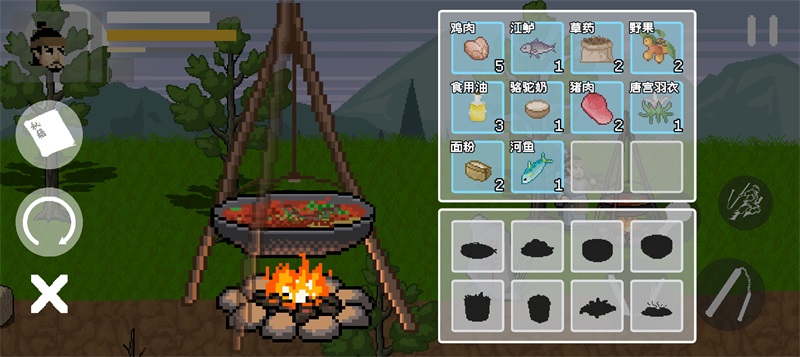 食材收集:击败敌人、探索场景掉落各类食材(鱼肉、猪肉、草药、野果等)。
