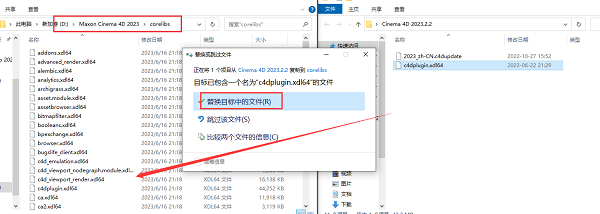 10、将安装包的激活补丁c4dplugin.xdl64复制到刚才打开的文件夹里面替换。