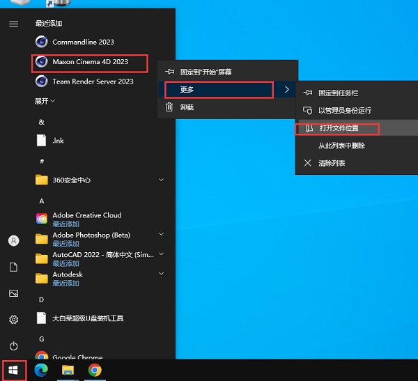7、电脑左下角开始菜单里面找到软件,鼠标右键选择更多-打开文件位置。