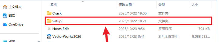 3、打开安装包解压后的【VectorWorks 2026(64bit)】文件夹,双击打开【Setup】文件夹